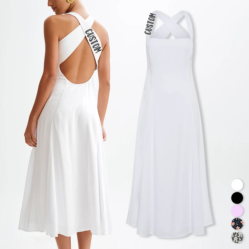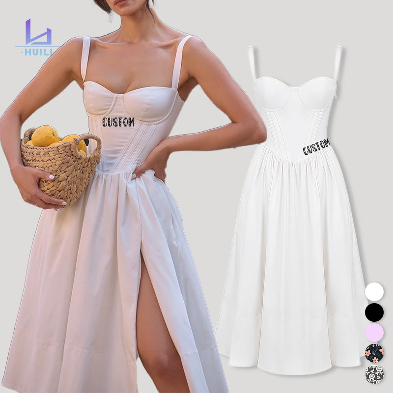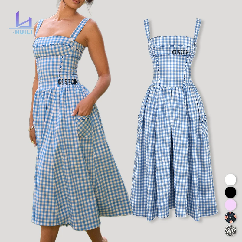 Huili Factory Designer Lace up Beach Dress Wholesale Cotton Linen Boho Custom Modest Long Dress Women